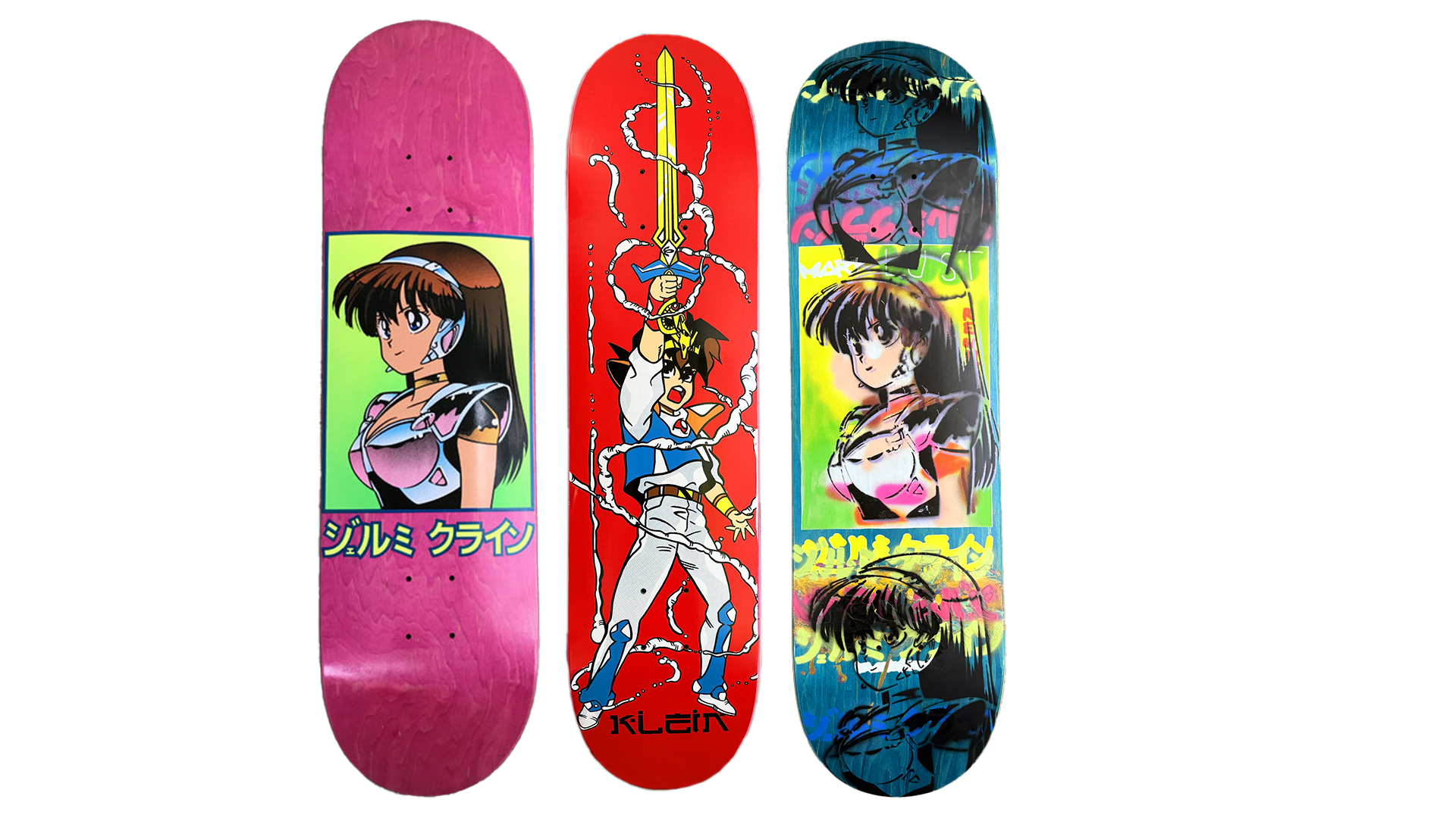 Jeremy Klein, 2024 Skateboarding Hall of Fame inductee, made his mark riding for Steve Rocco’s World Industries and later Tony Hawk’s Birdhouse before retiring in 2008. In 1993, he launched Hook Ups—a brand fusing skate culture with bold, anime-inspired graphics.